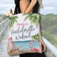 Sac fourre-tout aquarelle pour enterrement de vie de jeune fille sur le thème de la plage. Un petit sac de plage mignon pour vos aventures d'enterrement de vie de jeune fille. Un thème de plage aquarelle cool avec des nuances de rose et de sarcelle, créant l'ambiance pour une escapade à la plage avec la mariée et ses meilleures amies. Pour des voyages en Floride, en Californie, ou même quelque chose de plus international comme le Mexique, Hawaï ou les Bahamas, ce week-end entre filles va être inoubliable ! Chaise de plage rose et blanche, parasol et même un flotteur flamant rose pour s'amuser encore plus. Des palmiers qui se balancent, des coquillages à collectionner - tout est question de ces vibes tropicales et décontractées. Avec des polices modernes qui ajoutent une touche stylée, c