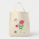 Un sac fourre-tout d'épicerie aux couleurs naturelles avec un joli design floral rose et vert d'un collage de papier peint à la main par Judy Adamson.