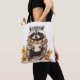 Tote Bag Feuilles d'automne confortable raccoon avec tasse