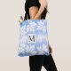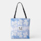 Lavage moderne à l'aquarelle bleue, feuilles d'érable et sac fourre-tout monogramme. Il comporte des bordures de feuilles d'érable blanc sur le lavage à l'aquarelle bleue et votre monogramme dans un cadre avec contour placé au centre.