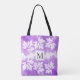 Lavage moderne à l'eau de la feuille d'érable violet et sac fourre-tout monogramme. Il comporte des bordures de feuilles d'érable blanc sur le lavage à l'aquarelle violette et votre monogramme dans un cadre avec contour placé au centre.