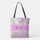 La parties scintillant de bokeh pastel lilas brille par le nom du monogramme et le sac fourre-tout initial. Votre nom personnalisé et votre monogramme sont écrits dans un élégant script écrit à la main avec un arrière - plan rose. Un cadeau d'anniversaire ou de Noël parfait !