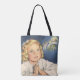 De beaux sacs fourre-tout tout-en-un ! Disponible en deux styles et deux tailles ! Illustration vintage conception religieuse avec portrait d'une jeune fille blonde priant au coucher et rêvant de Jésus-Christ.