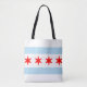 Tote Bag with flag of city of Chicago (largest city in Illinois), white and light blue striped flag with four red stars