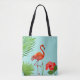 Tote Bag Flamant rose rouge, Hibiscus & Palm Tropical Feuil