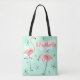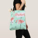 Tote Bag Flamants roses Retro Green Nom sur multi-back
