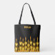 Flammes de feu orange orange moderne sur les Leggings arrière - plans noirs. Le texte peut être personnalisé.