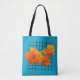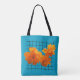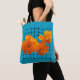 Tote Bag Fleur Cosmos orange sur grille noire sur Turquoise