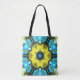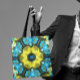 Tote Bag Fleur de Mandala rétro jaune et bleu