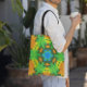 Tote Bag Fleur de Mandala vert jaune et bleu
