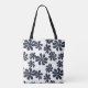 Tote Bag Fleurs à boulettes bleu marine avec couleur arrièr
