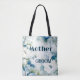 Sac fourre-tout de mariage élégant avec des fleurs aquarelles en bleu sarcelle et blanc. Beau comme cadeau pour la mère du marié et personnalisable pour toute autre occasion.