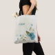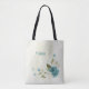Magnifique sac fourre-tout romantique orné de fleurs bleues et blanches et de quelques jolies feuilles vertes .