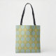 Tote Bag Fleurs bleues et jaunes Abstraites rétro sur vert