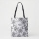 Sac fourre-tout à motif floral de monogramme noir et élégantes fleurs botaniques est un accessoire élégant et pratique pour une utilisation quotidienne. Présentant un délicat motif floral noir et blanc inspiré des dessins de chinoiserie et de toile, ce fourre-tout met en valeur des pivoines élégantes, apportant une touche intemporelle et sophistiquée à n'importe quel look. Parfait pour un cadeau d'anniversaire, ce sac fourre-tout chic peut être personnalisé avec des initiales de monogramme, ce qui en fait un cadeau attentionné et personnel. Idéal pour les courses, les commissions ou l'utilisation quotidienne, il ajoute une belle touche botanique à n'importe quelle tenue. Un accessoire polyvalent et moderne qui complète n'importe quelle garde-robe et constitue un excellent ajout à un panier de cadeaux de fête. Entièrement personnalisable. Besoin