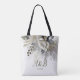 Tote Bag Fleurs de roses blanches dorées argentées à l'aqua