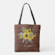 De jolis tournesols sur un fond en bois rustique ornent ce sac cabas. Personnalisez-le avec votre nom. Un accessoire parfait pour l'été ou un cadeau pour une demoiselle d'honneur. Conçu pour vous par Blackberry Boulevard.
