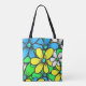 Tote Bag Fleurs d'été assez brillantes Bleu Jaune et Vert