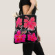 Sac fourre-tout cadeau de la femme de chambre. De grandes fleurs d'hibiscus roses sur arrière - plan noir, est le design des deux côtés. Le texte "Bridesmaid" est en gros, en écriture blanche qui couvre le centre du design. Le libellé et les images sont les mêmes de part et d'autre.