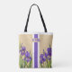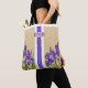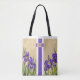 Tote Bag Fleurs Iris Violet Monogramme Faux Burlap Jute