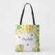 Tote Bag Fleurs jaunes miel abeilles monogramme nom