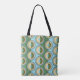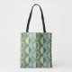 Tote Bag Fleurs pliées : motif rétro bleu-vert.