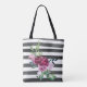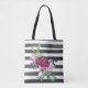 Tote Bag Fleurs rayées noir et blanc