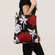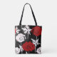 Tote Bag Fleurs rouges, blanches sur le noir.