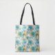 Tote Bag Fleurs turquoises et jaunes Illustration de l'encr