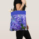 Sac fourre-tout floral amusant avec la joie des fleurs de printemps. Photo de jacinthes bleus en fleur sur le sac, avec une bordure bleue. Joli design féminin. Joli sac pour ceux qui adorent les fleurs bleues et violettes. Disponible en différentes tailles.