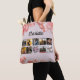 Créez un sac fourre-tout personnalisé pour maman avec des pétales arrière - plans et roses roses, avec 9 photos personnalisables et son nom. Le script Best Mom Ever le rend parfait pour la fête des mères ou toute occasion spéciale.
