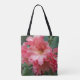 Vous avez le choix entre un sac fourre-tout élégant ou un sac de carrosserie avec un imprimé tout en haut qui présente l'image d'une splendide fleur de Rhododendron rose. Un joli design floral ! Sélectionnez le style et la taille de votre sac.