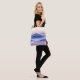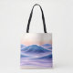 LUVINK Moderne Luxe Côtier. Twilight Drift présente des bandes en couches de lavande-crépuscule et des vagues profondément turquoises avec des reflets subtils de pêche-éclat sur un fond de sable. Les houles rythmiques évoquent le calme des marées du soir. Cet élégant fourre-tout est parfait pour les jours de plage, les courses de marché, ou ajouter une touche côtière artistique à votre portage quotidien.