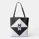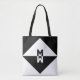 Sac fourre-tout géométrique moderne en noir et blanc. Ma lettre peut être personnalisée.