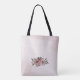 Tote Bag Fourre-tout romantique fleurs roses & feuilles ver