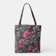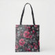 Tote Bag Framboise, fleurs bordeaux sur gris foncé