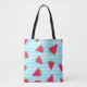 Tote Bag Fun Chic Watermelon Slices Blue Lines Motif