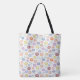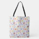 Tote Bag Fuzzy Flower Rpt Pattern Pastels on White