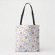 Tote Bag Fuzzy Flower Rpt Pattern Pastels on White