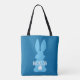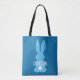 La silhouette bleue Pâques de lapin a personnalisé la chasse Fourre-tout à oeufs d'enfants. Silhouette bleue de lapin avec les queues pelucheuses. Personnalisez avec le nom de votre enfant au centre. Changez la couleur du texte en choisissant la "personnaliser". L'arrière - plan est bleu. Fourre-tout personnalisé mignon pour l'oeuf de pâques chasse, traite du lapin ou des enfants de Pâques qui aiment des conceptions de lapin. Conceptions élégantes modernes de Pâques pour des enfants. www.SamAnnDesigns.com