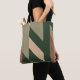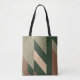 Ce sac fourre-tout présente un design audacieux et abstrait, avec des lignes diagonales profondes dans des tons terre de vert, beige et marron doux. Les formes angulaires superposées créent un motif dynamique, presque en chevron, qui ajoute mouvement et flux à la conception. La palette de couleurs évoque des éléments naturels, ce qui en fait un accessoire élégant et polyvalent, parfait pour un usage quotidien. Son design minimaliste mais impeccable dégage une ambiance moderne tout en restant fidèle à un thème d'inspiration nature, ce qui en fait une pièce subtile pour des sorties décontractées.