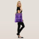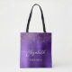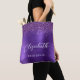 Ce sac fourre-tout élégant pour demoiselle d'honneur moderne présente une bordure de faux strass violet. Ajoutez son nom en écriture manuscrite blanche et le mot "demoiselle d'honneur" ou un autre titre en police sans serif sur un fond en métal brossé violet.