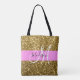 La parties scintillant dorée et rose et jaune brillent de blanc nom monogramme et sac fourre-tout initial. Votre nom personnalisé et votre monogramme sont écrits dans un élégant script écrit à la main avec un arrière - plan rose. Vous pouvez modifier la couleur du texte, le style et la taille de police à l'aide de l'option personnaliser. Un cadeau d'anniversaire ou de Noël parfait !