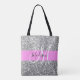 Glam et girly rose et gris / argent parties scintillant scintillent blanc nom monogramme et sac fourre-tout initial. Votre nom personnalisé et votre monogramme sont écrits dans un élégant script écrit à la main avec un arrière - plan rose. Vous pouvez modifier la couleur du texte, le style et la taille de police à l'aide de l'option personnaliser. Un cadeau d'anniversaire ou de Noël parfait !