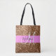 La parties scintillant en glam et rose girly et bronze scintille le nom de monogramme blanc et le sac fourre-tout initial. Votre nom personnalisé et votre monogramme sont écrits dans un élégant script écrit à la main avec un arrière - plan rose. Vous pouvez modifier la couleur du texte, le style et la taille de police à l'aide de l'option personnaliser. Un cadeau d'anniversaire ou de Noël parfait !