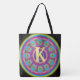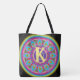 Tote Bag Grand NOIR psychédélique initial fait sur commande