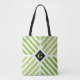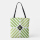 Rafraîchissez votre garde-robe de printemps et d'été avec ce sac fourre-tout personnalisé qui présente des rayures en diagonale audacieuses dans deux tons de vert plus un monogramme personnalisable. Modifiez la première pour créer un cadeau unique qui conviendra parfaitement aux ados et aux femmes de tous âges. Qu’il soit utilisé pour faire du shopping, passer une journée entre amis ou passer un week-end, ce fourre-tout polyvalent apportera une touche de couleur à tout ensemble printemps ou été.