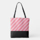 Emmenez ce fourre-tout n'importe où avec son design moderne et simple. Ce fourre-tout est doté d'un motif rayé rose gras aux couleurs vives avec un bloc noir en bas. Personnalisez ce fourre-tout avec votre propre monogramme.