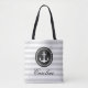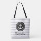 Sac fourre-tout moderne avec motif, ancre et nom personnalisable rayures grises.