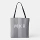 bandes grasses vintages monogrammées en niveaux de gris sur tout le sac fourre-tout d'impression
